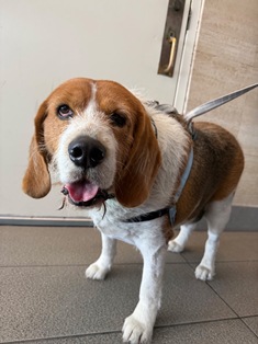 Skittles is a lemon beagle mix, estimated to be 10 months old. He landed in the shelter, without information, after being brought in as a stray overnight. He suffered an injury from an accident, apparently being hit by a car. Skittles spent three weeks recovering in the shelter, and in boarding at the vet that we use in San Jose. The good news is the doctors did not find a fracture although his toes remained bandaged as they recovered. This sweet pup loves attention and having his head scratched and ears, and has completely recovered from his injuires. Skittles is doing great in his foster home. He is getting along very well with the other dogs in his foster home and enjoys playing with the younger beagle in the home. He is also mindful of the cues the senior beagle gives him, when she does not want to indulge in his playful puppy antics. Skittles is also learning about the dog park and although he is a little skittish around the larger dogs at the park, he seems to really enjoy socializing with the other dogs. He enjoys spending time with his foster parents although is also interested in exploring in the backyard and checking things out. After all of his activities and puppy antics, he will wind down a take a nap either in his dog bed or next to his foster parent. Skittles will do very well in a home with a family who has experience with beagles, have a flexible schedule or stay at home parent, and another playful dog to keep him company. He is a delightful little guy and please contact Eva if you would like to welcome Skittles into your home. Contact Eva at 916-803-4935 (text) or norcalbeagles@gmail.com Online Adoption Application See: http://youtube.com/shorts/S0OL9ICfEcY